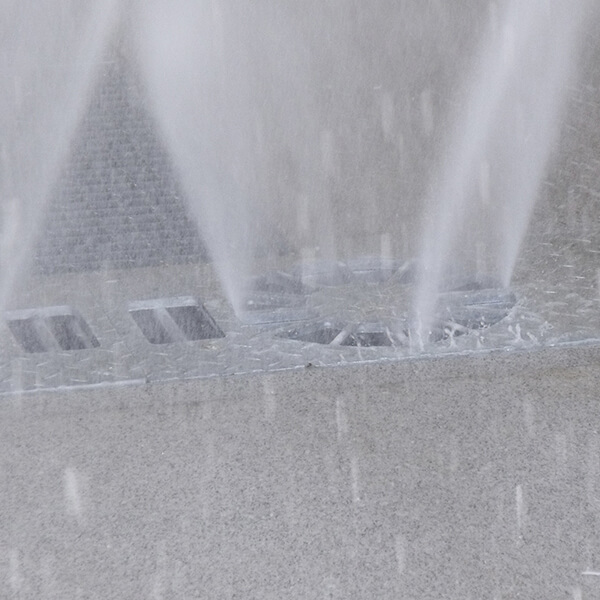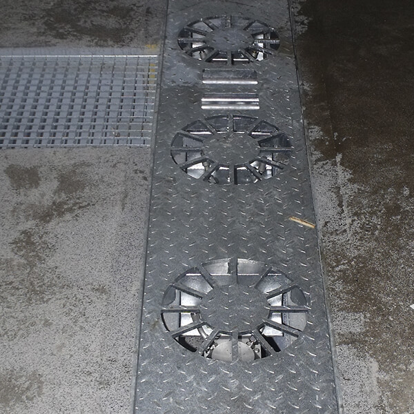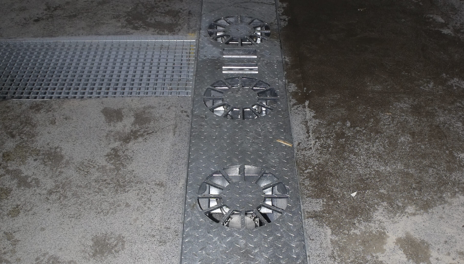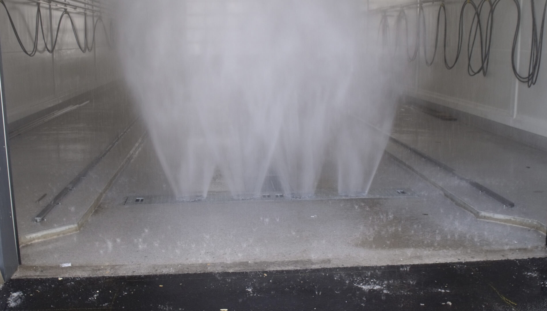 Stationary installation frame with 4 hydraulically driven high-pressure heads to clean the underbody of cars, busses, trucks, vans and other vehicles. The cleaning of the surfaces is optimized by the rotating heads. Automatic activation by light barrier or inductive loop.