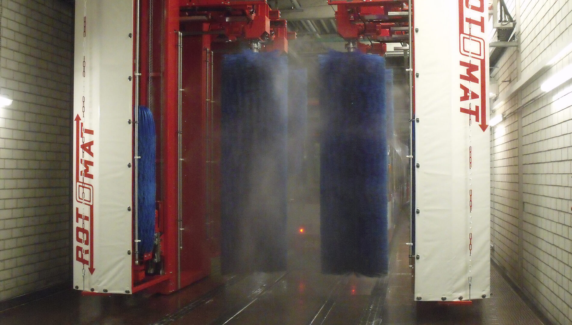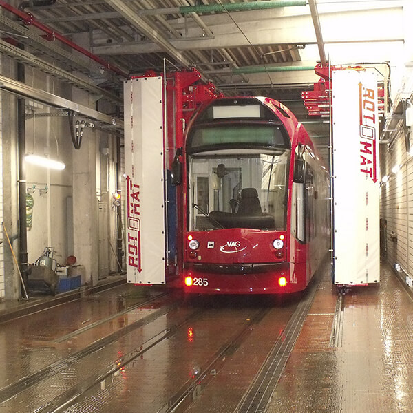 Trams, busses, trucks, transporter and cars as well as trains became washed all-automatic,